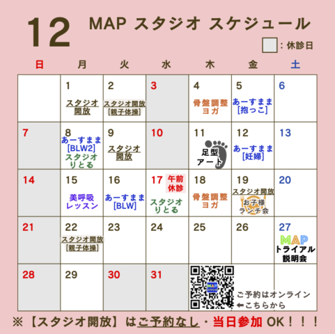 12月は冬休みもあるため、後半はイベントがありませんのでご注意ください。