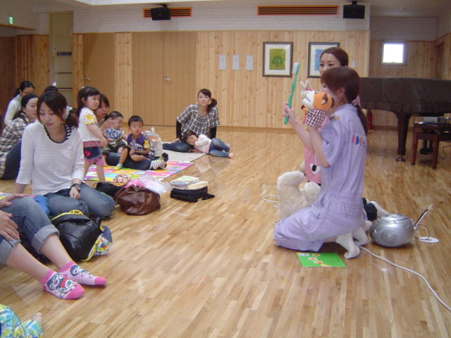 保育士による親子のふれあい遊びや音楽を取り入れた歯科リトミックを行いました。
