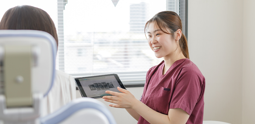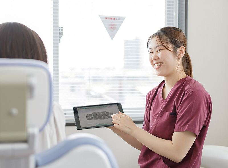 歯科衛生士は、患者様と密にコミュニケーションをとりながら、口腔ケアのサポートを行います。